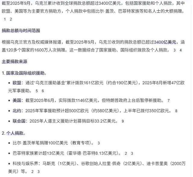 至于乌克兰的捐款数据,更是被严重误读。3400亿美元援助中,绝大多数是欧美政府的军援和财政支持,个人捐款占比极小。